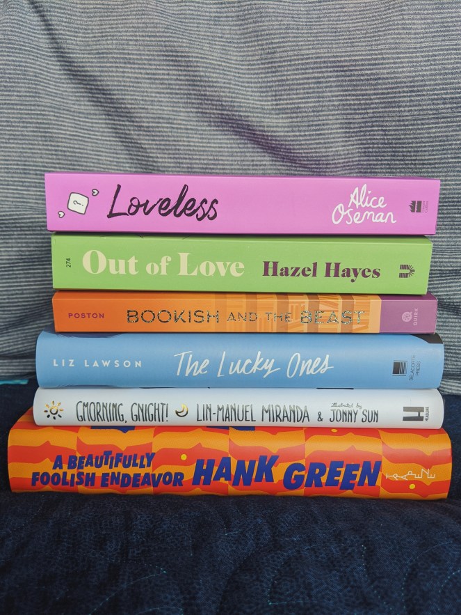I still haven’t been in a bookstore to just browse books and let me tell you I miss it so much. Even at the library I work at the books we have are so behind so I’m not even getting my book browsing fix there. So, instead I have been again buying books from my wishlist which has been a lot of fun! From my wishlist this month I bought, Out of Love by Hazel Hayes which I have just finished reading and absolutely love. I’d compare it to Normal People by Sally Rooney but backwards. Also, I bought, The Lucky Ones by Liz Lawson and Gmoring, Gnight by Lin-Manuel Miranda.