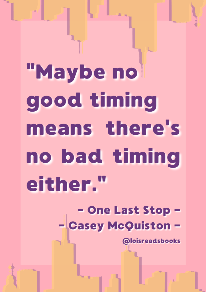 Here is a little image I designed for a quote I loved from One Last Stop by Casey McQuiston.