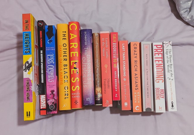 I started the month out very well when it comes to book buying and did absolutely none, but as the month went on I began buying books and couldn’t stop. The first book I picked up this month was, A Tale for the Time Being by Ruth Ozeki. I picked this one up completely randomly in a Waterstones and was sold by the synopsis. It just sounds so intriguing. On the same day I took a trip into The Works and took advantage of their 3 for £5 deal. I picked up Pretending by Holly Bourne as this as been on my wish list for quite a while. Also, The Phone Box at the End of the World by Laura Imai Messina because it has been recommended to me a lot. Lastly, Talk Bookish to Me by Kate Bromley because I just needed a little bit of predictable romance!