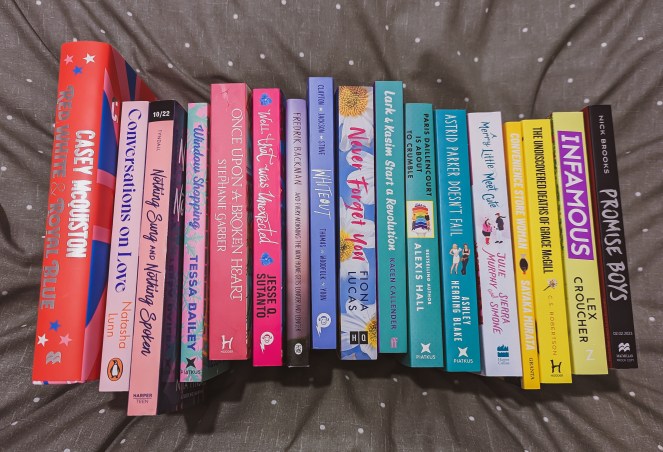 I want on a little trip to some bookshops with my best friend this month. I saw the special edition of Red, White & Royal Blue by Casey McQuiston and I could not leave without it. It is stunning and I adored the book so I treated myself. I spotted Paris Daillencourt Is About to Crumble by Alexis Hall and picked that up too. I found Convenience Store Woman by Sayaka Murata in a charity shop and picked that up straight away. Then I saw Infamous by Lex Croucher and The Undiscovered Deaths of Grace McGill by C. S. Robertson in another shop and had to pick them up.