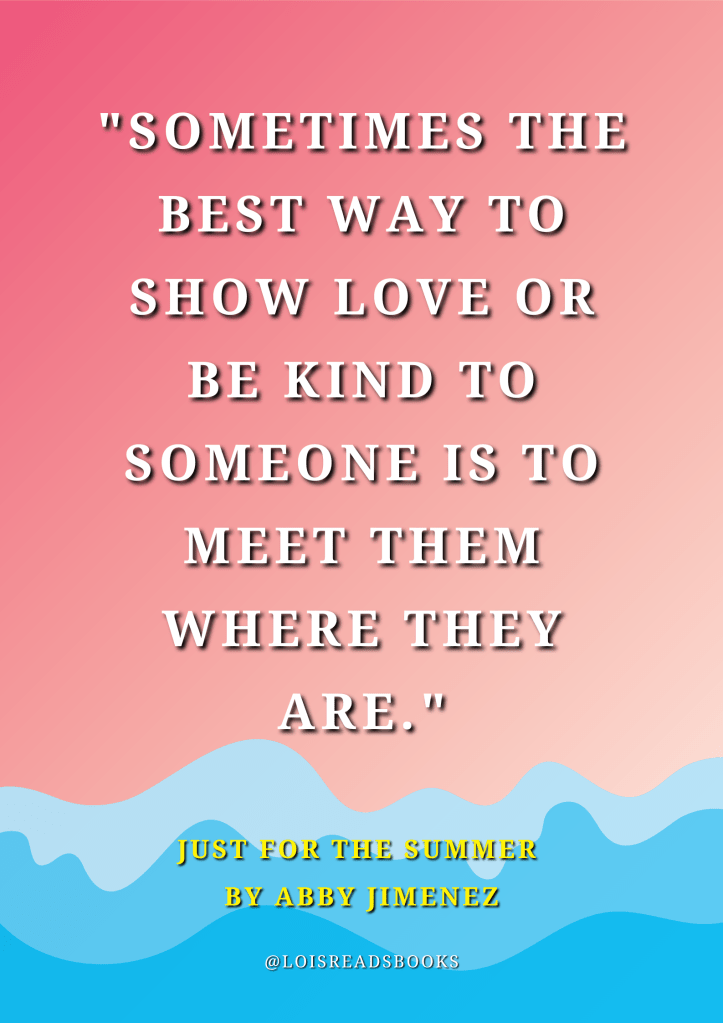 Here is a little image I designed for a quote from Just for the Summer by Abby Jimenez.